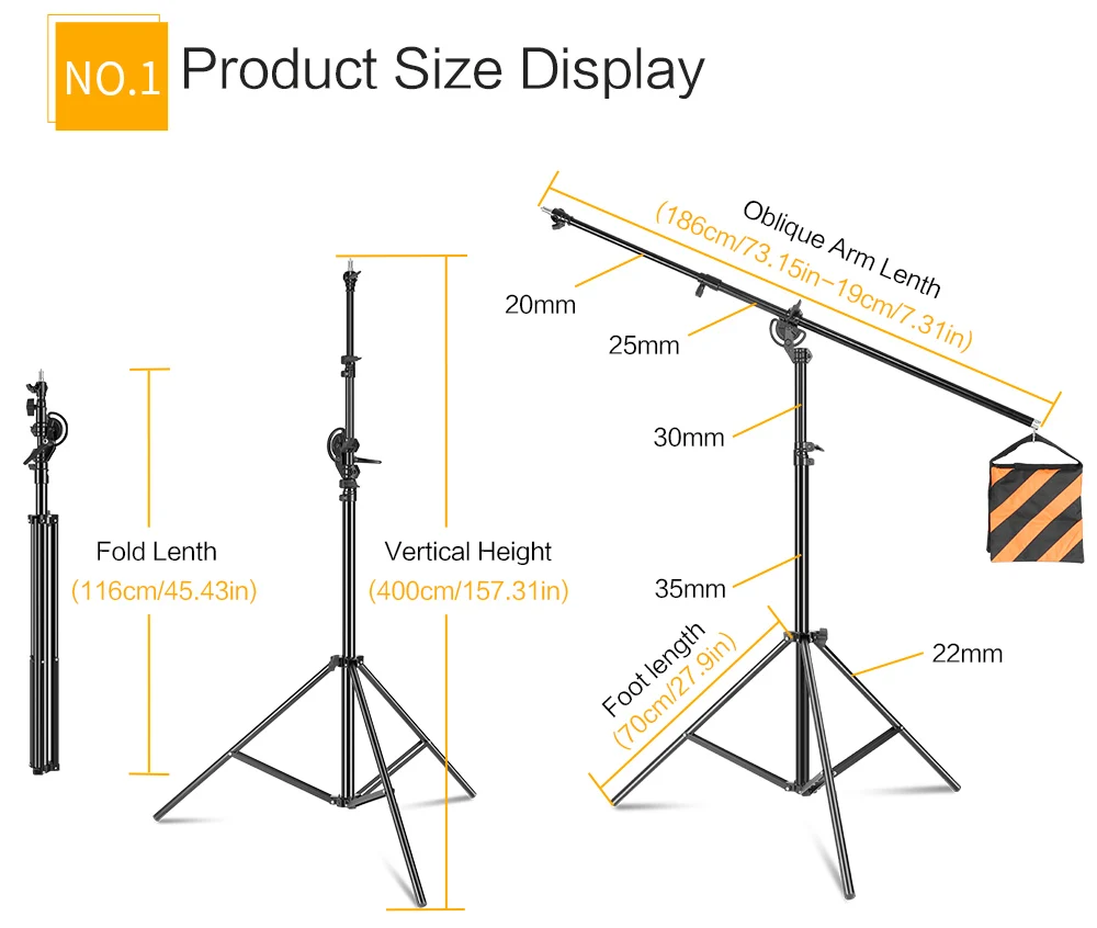 Package included:: 1.8m Light Stand With 1.8m Cantilever frame and Sandbag