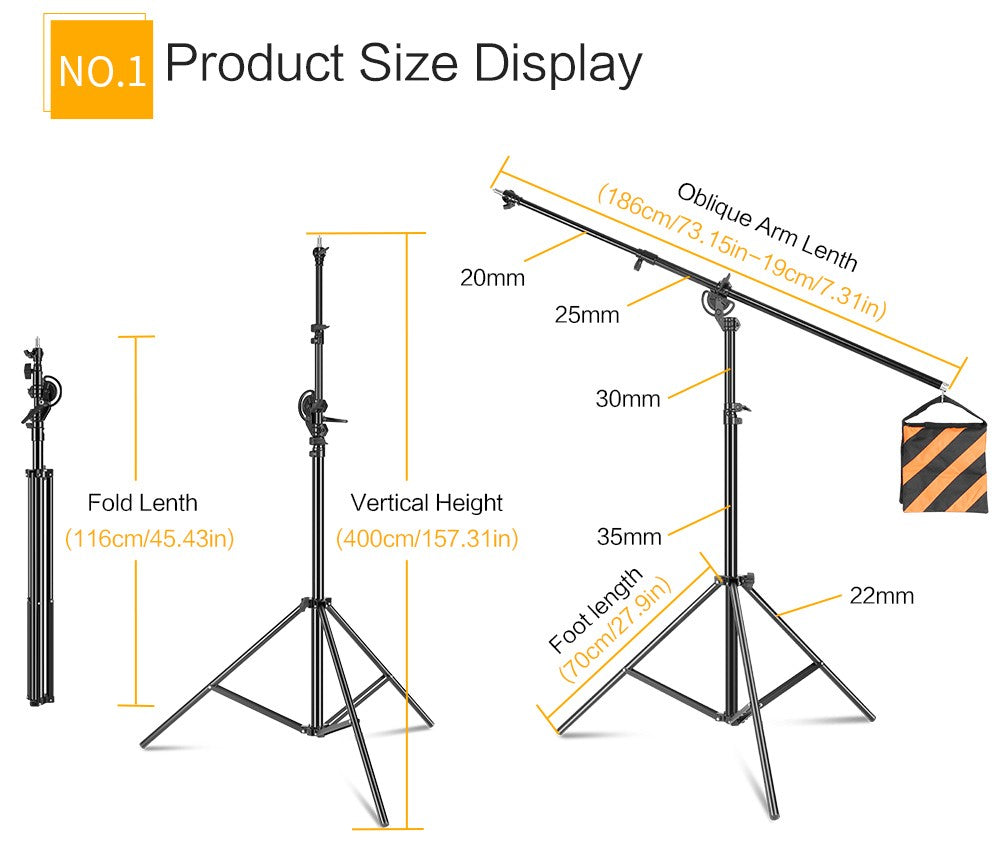 Incluído no pacote: 1.8m Light Stand Com 1.8m Cantilever frame e Sandbag